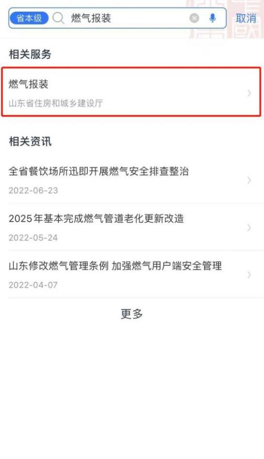 1、同样在首页搜索“燃气报装”服务,点击进入;