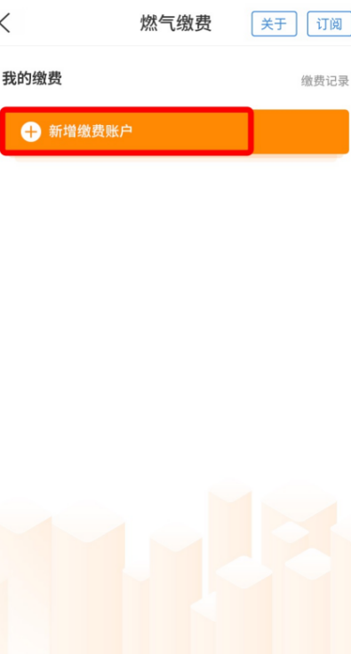 2、点击“新增缴费账户”,选择所在服务单位后,输入户号,点击“下一步”;