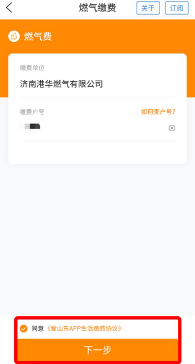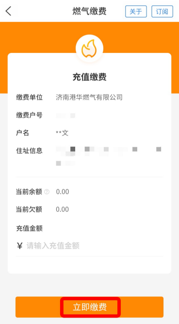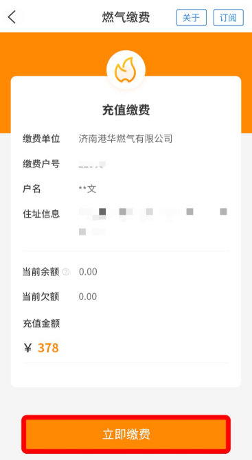 *首次缴费成功后,缴费信息将自动保存至系统。待再次使用“爱山东”APP缴燃气费时,直接进入该应用首页,点击页面上方的“缴费”按钮,即可实现一键缴费!