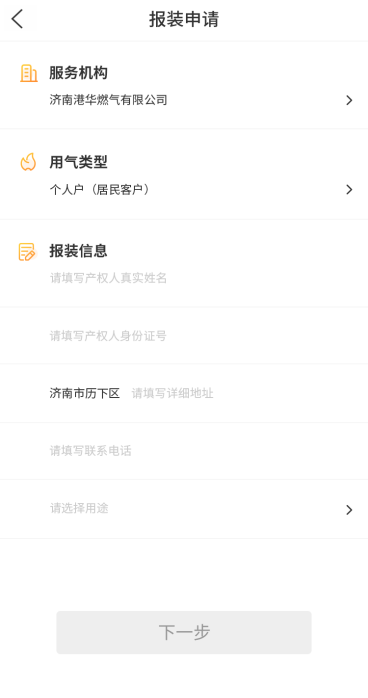 此外,“爱山东”APP还可办理燃气报装业务。以个人户为例,操作步骤如下: