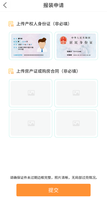 4、按要求填写报装信息,完成后点击“下一步”,上传相关图片(非必填)并提交。