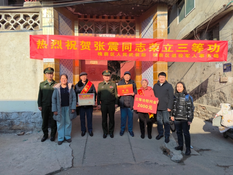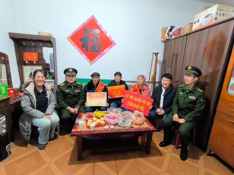 军功耀门楣,喜报显尊崇。为进一步弘扬新时代拥军优属光荣传统,增强军人军属的荣誉感和自豪感,12月29日,槐荫区人武部部长李京进、区退役军人事务局副局长康学忠到段店北路街道走访慰问荣立三等功的现役军人家庭。段店北路街道综合治理和应急管理服务中心主任黄传炬、退役军人服务站工作人员陪同走访。