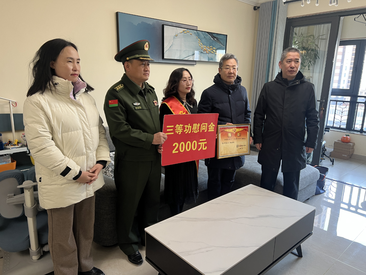 和煦的阳光轻柔地洒在整洁明亮的客厅,慰问信摆在茶几中央,静静地传递着温暖与敬意。近日,槐荫区武装部、退役军人事务局及兴福街道退役军人服务站、恒大御峰社区组成的送喜队伍走进张利勃家中,送上喜报和关怀。