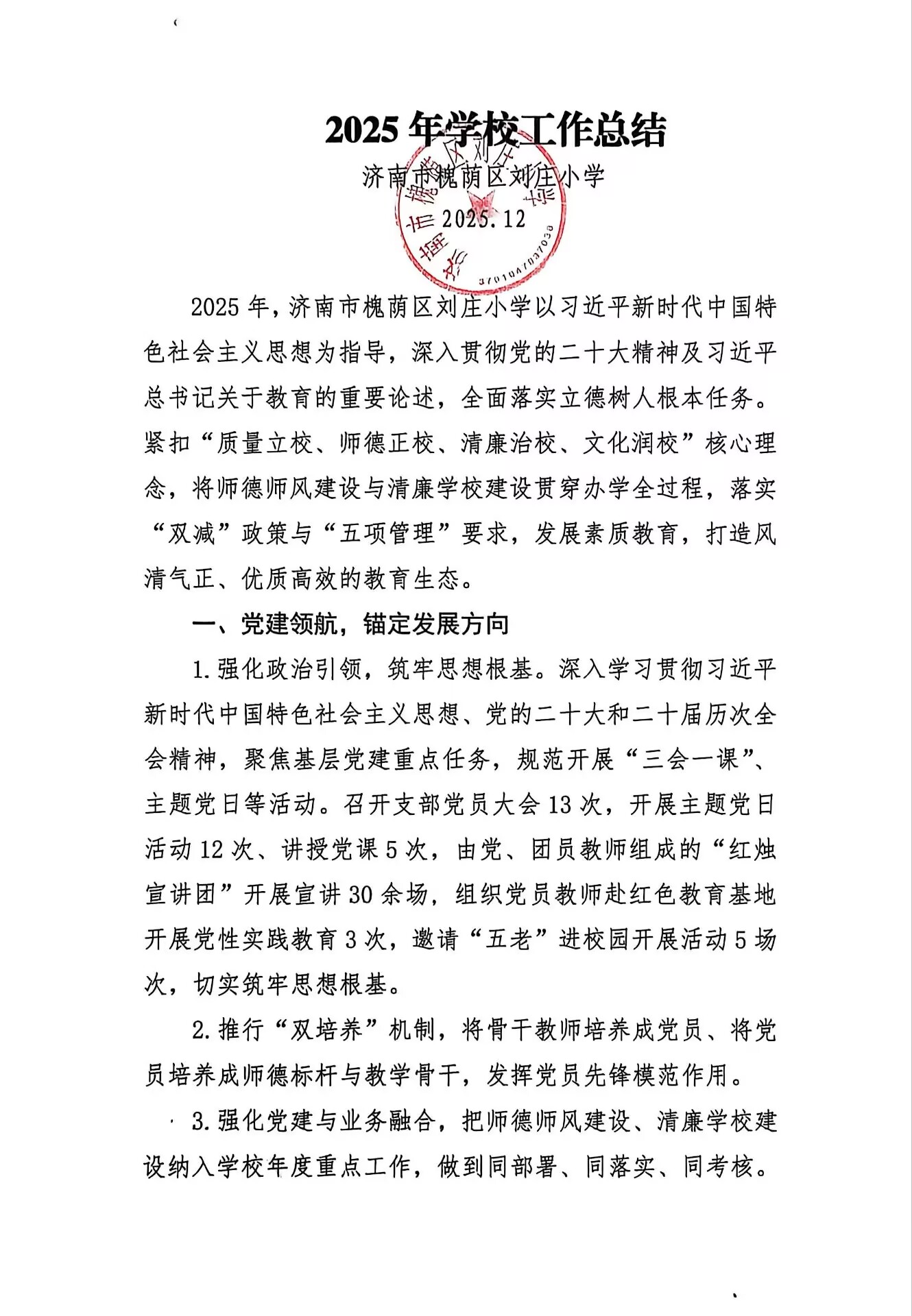 刘庄小学2025年学校工作总结