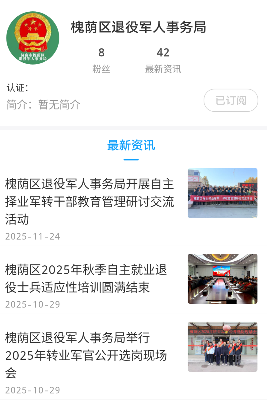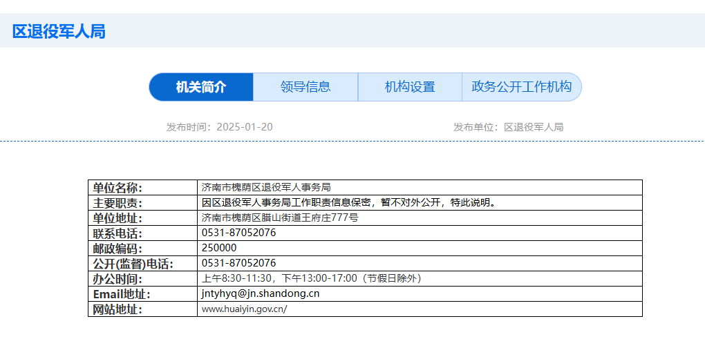 济南市槐荫区退役军人事务局2025年政府信息公开工作年度报告