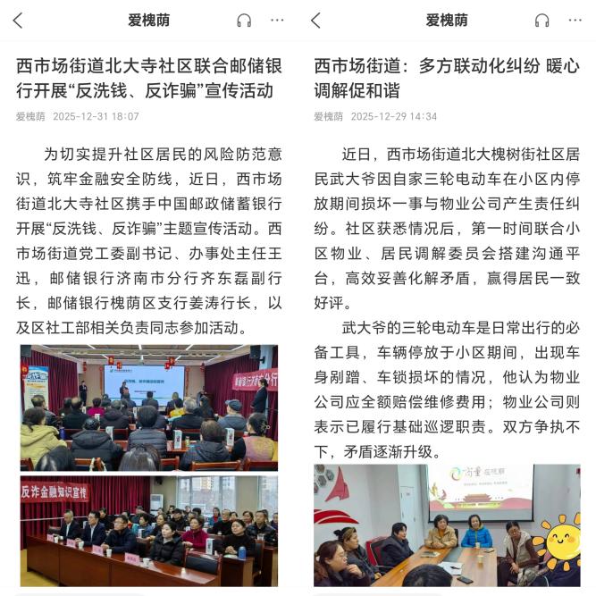 (四)政府信息公开平台建设。街道扎实推进政务公开专区打造工作,致力于构建一站式、个性化、高效便捷的信息服务窗口,不断增强为民服务的能力与水平。街道积极拓展政府信息公开途径,多维度、全方面向社会各界展示街道工作进展,政务公开网站和“爱槐荫”政务号重点围绕民生保障等群众关心关注的领域进行更新,确保政务信息发布的时效性与精准性。